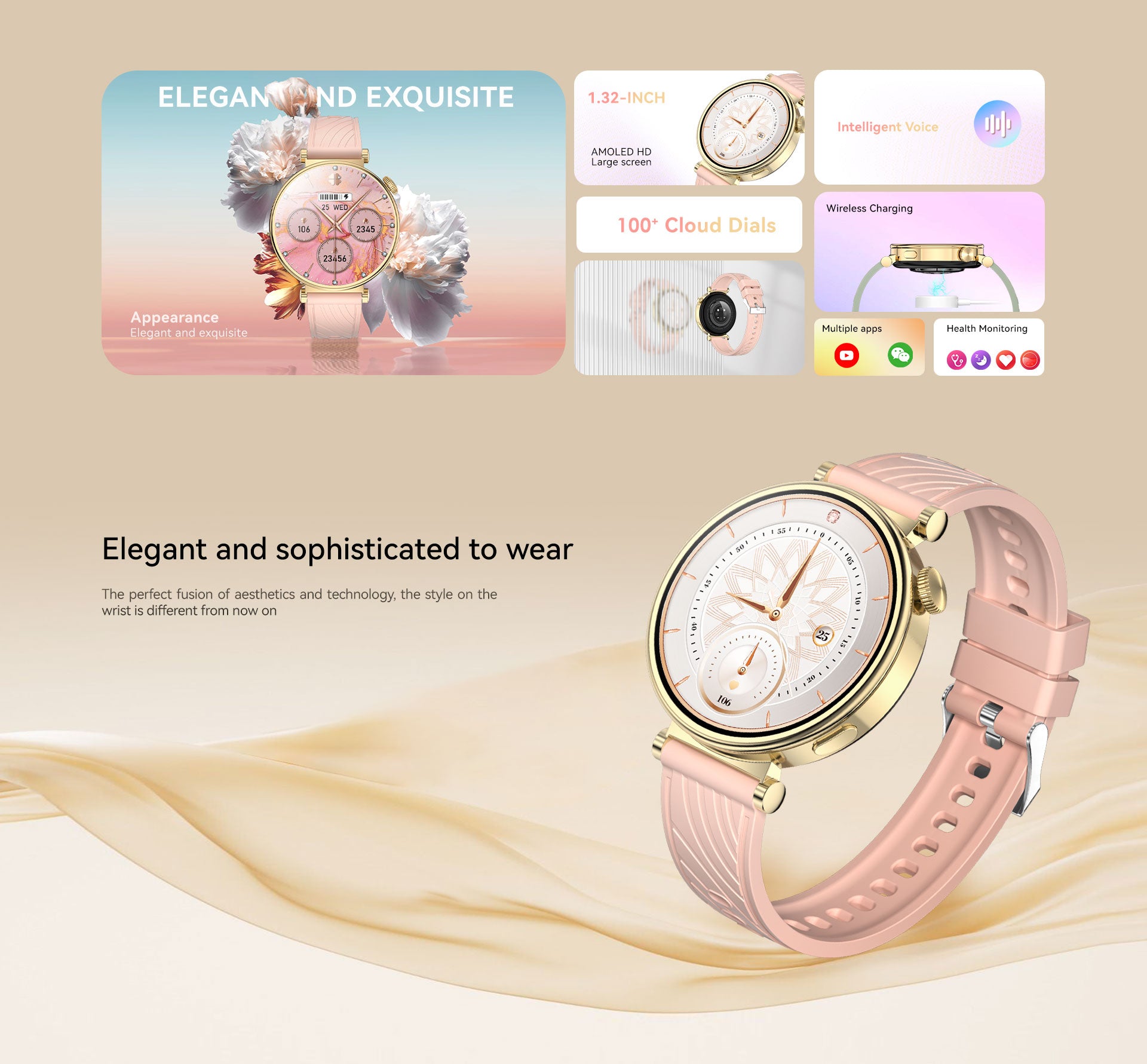 Take charge of your wellness with 24/7 heart rate, SpO₂, sleep, stress, female health, and blood pressure monitoring. You can also customize your watch with 100+ cloud-based faces, or create your own using the DIY watch face feature.